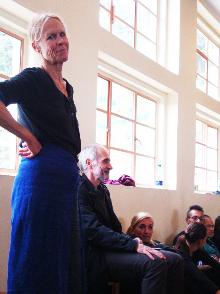 Ayer tuve la bonita oportunidad conversar con ella llegar al teatro la vi y fue muy amable conmigo desde el principio. Hicimos la nota en el Café Gaitán, hablamos de budismo, danza, teatro, arte y muchas cosas interesantes. Me contó como siendo budista había tenido la oportunidad de bailar para el Dalai Lama y como este se expresaba siempre con una sonrisa. Me contó su admiración por los orientales y como a pesar de sus múltiples dificultades siempre tenían una sonrisa en el rostro. Prefiere llamar a su arte poesía visual en vez de danza. Le gusta la literatura latinoamericana y el “calor” que tenemos al bailar.
