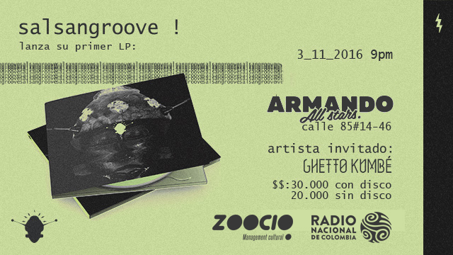 El lanzamiento del primer LP de Salsangroove se realizará el 3 DENOVIEMBRE, desde las 9pm en ARMANDO ALL STARS (CLL 85#14-46), con GHETTO KUMBÉ como invitado especial (los reyes del house caribeño)