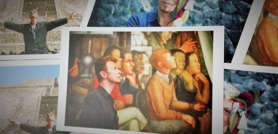 La única visita oficial que hizo Bowie a México fue parte de la promoción del disco Earthling y tuvo como ingrediente especial esta colección del artista caminando en las pirámides y apreciando las obras de Diego Rivera y Frida.