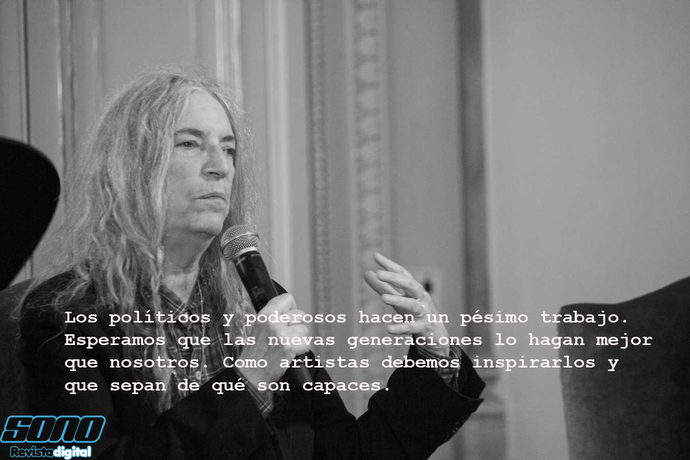 La sala del Teatro Delia Zapata Olivella se iluminó con la presencia de la escritora, fotógrafa y cantante Patti Smith y Stephan Crasneasck, su compañero del Soundwalk Collective.